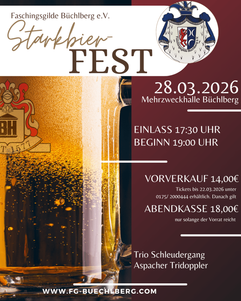 Das dritte Starkbierfest steht an und wir freuen uns euch ein komplett neues Programm vorstellen zu dürfen. Die Schleudergang und die Aspacher Tridoppler sind mit dabei! Sichert Euch die Tickets im Vorverkauf unter 0175/2000444 – nur bis 22.03.2026 möglich. Danach gilt die Abendkasse.